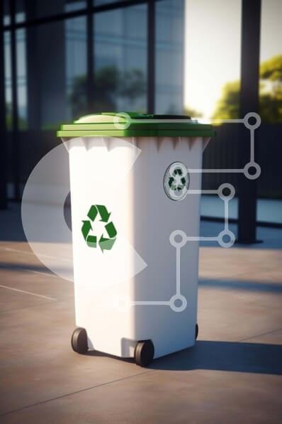 Υπάρχει δυνατότητα προσωποποίησης με δική σας φωτογραφία και προσαρμογής διαστάσεων κατόπιν παραγγελίας. Το συγεκεριμενο puzzle παρουσιαζει Η εικόνα δείχνει έναν λευκό κάδο απορριμμάτων τοποθετημένο κεντρικά σε έναν εσωτερικό χώρο, που περιβάλλεται από πολλούς κάδους ανακύκλωσης κατάλληλους για την απόρριψη απορριμμάτων. Στο βάθος, ένα περίοπτο μεγάλο κτίριο υπαινίσσεται ένα συγκρότημα γραφείων. Ένα μοναδικό puzz