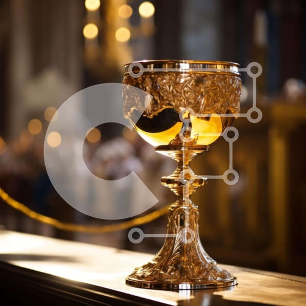 Υπάρχει δυνατότητα προσωποποίησης με δική σας φωτογραφία και προσαρμογής διαστάσεων κατόπιν παραγγελίας. Το συγεκεριμενο puzzle παρουσιαζει Αυτή η εικόνα απεικονίζει ένα χρυσό κύπελλο τοποθετημένο σε ένα όμορφα διακοσμημένο ξύλινο τραπέζι. Είναι πιθανό να χρησιμοποιηθεί για τελετουργικούς σκοπούς, όπως θρησκευτικές εκδηλώσεις ή γάμους. Στο φόντο υπάρχουν πολλά κεριά, δημιουργώντας μια ατμόσφαιρα πνευματικής σημασί