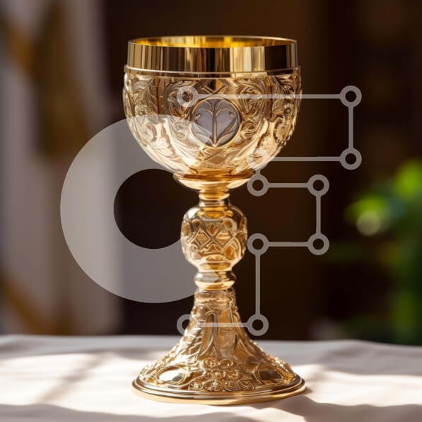 Υπάρχει δυνατότητα προσωποποίησης με δική σας φωτογραφία και προσαρμογής διαστάσεων κατόπιν παραγγελίας. Το συγεκεριμενο puzzle παρουσιαζει Αυτή η εικόνα παρουσιάζει ένα χρυσό κύπελλο πάνω από ένα κομψά διακοσμημένο τραπέζι. Είναι πιθανό να χρησιμοποιηθεί για τελετουργικούς σκοπούς, όπως μάζα ή γάμους. Το φόντο περιλαμβάνει πολλά φυτά, υποδηλώνοντας ότι μπορεί να έχει βγει έξω κατά τη διάρκεια μιας θρησκευτικής εκ