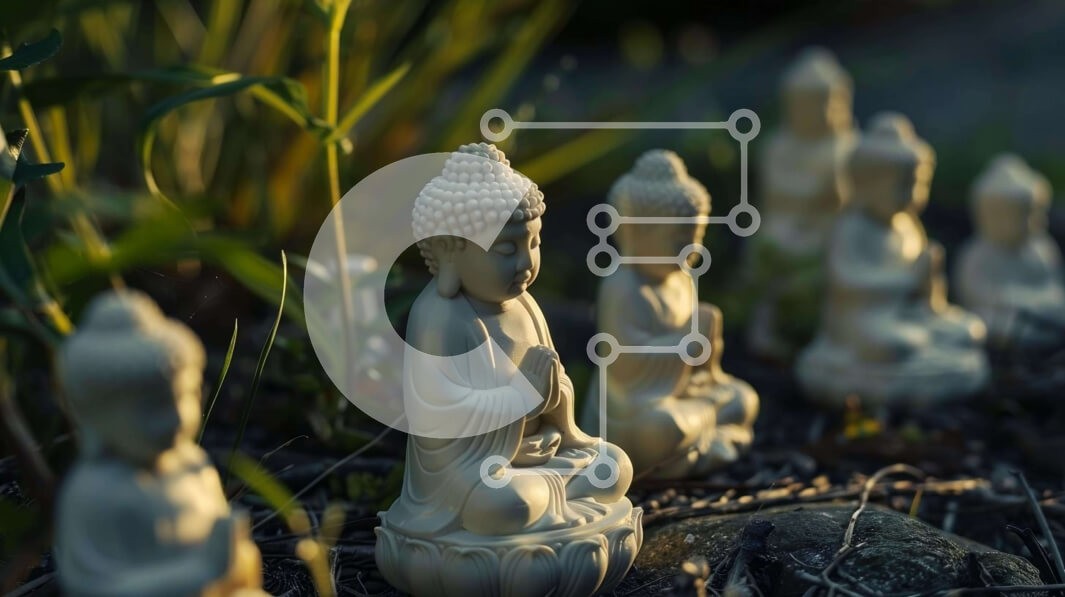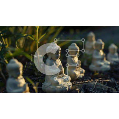 Υπάρχει δυνατότητα προσωποποίησης με δική σας φωτογραφία και προσαρμογής διαστάσεων κατόπιν παραγγελίας. Το συγεκεριμενο puzzle παρουσιαζει Η εικόνα δείχνει μια ομάδα λευκών αγαλμάτων του Βούδα τοποθετημένα στο έδαφος ανάμεσα σε φυτά και γρασίδι. Αυτά τα αγάλματα πιθανότατα τοποθετούνται για διακοσμητικούς ή πνευματικούς σκοπούς, πιθανώς να αποτελούν μέρος ενός βωμού ή ιερού. Μπορούν να χρησιμεύσουν ως φυλαχτά ή σ
