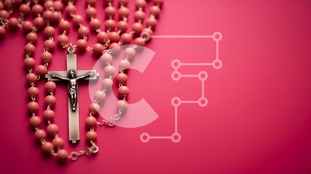 Υπάρχει δυνατότητα προσωποποίησης με δική σας φωτογραφία και προσαρμογής διαστάσεων κατόπιν παραγγελίας. Το συγεκεριμενο puzzle παρουσιαζει Η εικόνα παρουσιάζει ένα ροζ φόντο στολισμένο με κομπολόγια και ένα σταυρό, που μεταφέρει τον βαθύ συμβολισμό του θανάτου και της ανάστασης του Χριστού. Διάφορα θρησκευτικά σύμβολα όπως σταυροί, σταυροί και μετάλλια παρουσιάζονται επίσης, προσθέτοντας βάθος στην πνευματική αφή