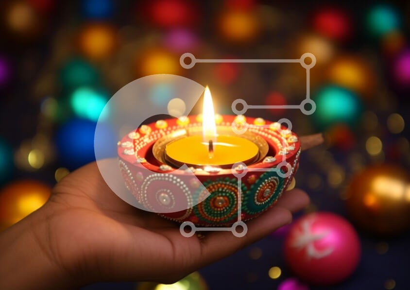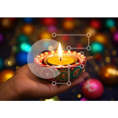 Υπάρχει δυνατότητα προσωποποίησης με δική σας φωτογραφία και προσαρμογής διαστάσεων κατόπιν παραγγελίας. Το συγεκεριμενο puzzle παρουσιαζει Η εικόνα δείχνει ένα χέρι που κρατά ένα κερί με θυμίαμα διακοσμημένο με πολύχρωμα στολίδια και μπάλες. Συμβολίζει γιορτές όπως το Diwali και άλλες εορταστικές περιστάσεις. Η παράδοση στο άναμμα των κεριών τονίζεται για ειδικές εκδηλώσεις όπως τα Χριστούγεννα ή την Πρωτοχρονιά.
