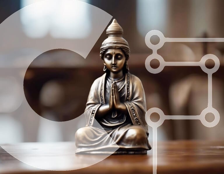 Υπάρχει δυνατότητα προσωποποίησης με δική σας φωτογραφία και προσαρμογής διαστάσεων κατόπιν παραγγελίας. Το συγεκεριμενο puzzle παρουσιαζει Αυτή η εικόνα παρουσιάζει ένα μικρό, μπρούτζινο άγαλμα του Βούδα που κάθεται πάνω σε ένα δρύινο ξύλινο τραπέζι. Το άγαλμα τοποθετείται στη μέση του τραπεζιού, με τα χέρια του ενωμένα στην προσευχή. Μπορεί να είναι μέρος κάποιου τύπου θρησκευτικής ή πνευματικής πρακτικής, όπως