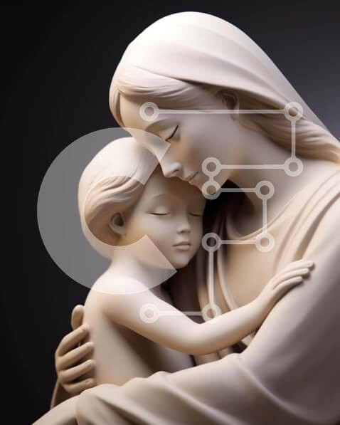 Υπάρχει δυνατότητα προσωποποίησης με δική σας φωτογραφία και προσαρμογής διαστάσεων κατόπιν παραγγελίας. Το συγεκεριμενο puzzle παρουσιαζει Η εικόνα απεικονίζει ένα άγαλμα της Παναγίας που αγκαλιάζει το παιδί της, πιθανότατα φτιαγμένο από λευκό μάρμαρο, που συμβολίζει τον δεσμό μεταξύ μητέρας και παιδιού. Ένα μοναδικό puzzle που συνδυάζει ποιότητα, αισθητική και εμπειρία. Υλικό: Κατασκευασμένο από ανθεκτικό και