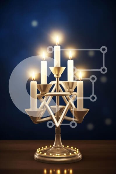 Υπάρχει δυνατότητα προσωποποίησης με δική σας φωτογραφία και προσαρμογής διαστάσεων κατόπιν παραγγελίας. Το συγεκεριμενο puzzle παρουσιαζει Αυτή η εικόνα απεικονίζει ένα κηροπήγιο με έξι αναμμένα κεριά, που συμβολίζουν το αστέρι του Δαβίδ, τοποθετημένο σε ένα ξύλινο τραπέζι. Είναι ιδανικό για τον εορτασμό περιστάσεων όπως το Χανουκά, το Πάσχα ή άλλες εορταστικές εκδηλώσεις. Η ζεστή λάμψη των κεριών δημιουργεί μια