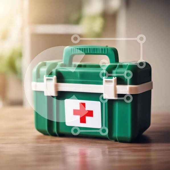 Υπάρχει δυνατότητα προσωποποίησης με δική σας φωτογραφία και προσαρμογής διαστάσεων κατόπιν παραγγελίας. Το συγεκεριμενο puzzle παρουσιαζει Η εικόνα παρουσιάζει ένα πράσινο κιτ πρώτων βοηθειών τοποθετημένο πάνω από ένα ανοιχτό ξύλινο τραπέζι. Είναι μια πρακτική λύση αποθήκευσης μικρών ιατρικών προμηθειών, όπως επίδεσμοι ή έμπλαστρα, σε περίπτωση τραυματισμού ή ασθένειας. Τα κιτ πρώτων βοηθειών βρίσκονται συνήθως σ