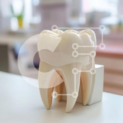 Υπάρχει δυνατότητα προσωποποίησης με δική σας φωτογραφία και προσαρμογής διαστάσεων κατόπιν παραγγελίας. Το συγεκεριμενο puzzle παρουσιαζει Η εικόνα παρουσιάζει ένα μεγάλο, στυλιζαρισμένο οδοντικό μοντέλο ενός δοντιού, που εμφανίζεται σε περίοπτη θέση σε ένα τραπέζι. Το μοντέλο των δοντιών είναι γυαλιστερό και λευκό, με ρεαλιστικές λεπτομέρειες, συμπεριλαμβανομένων δύο διακριτών ριζών. Τοποθετείται σε ένα απαλό, θ