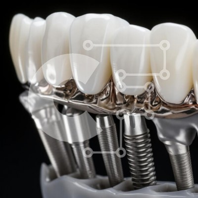 Υπάρχει δυνατότητα προσωποποίησης με δική σας φωτογραφία και προσαρμογής διαστάσεων κατόπιν παραγγελίας. Το συγεκεριμενο puzzle παρουσιαζει Η εικόνα δείχνει ένα λεπτομερές κοντινό πλάνο οδοντικών εμφυτευμάτων και στεφάνων. Τα οδοντικά προσθετικά παρουσιάζονται σε μεταλλική κατασκευή με γυαλισμένες λευκές στεφάνες, αναδεικνύοντας τη σύγχρονη οδοντιατρική τεχνολογία. Το φόντο είναι σκούρο, δίνοντας έμφαση στις γυαλι