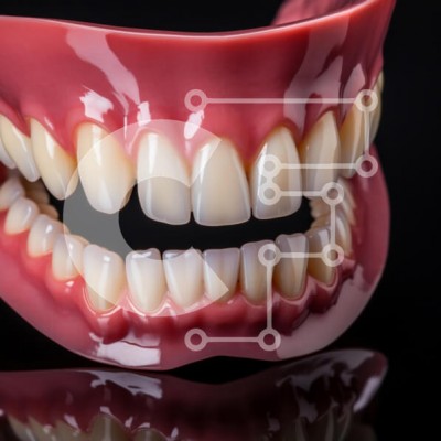 Υπάρχει δυνατότητα προσωποποίησης με δική σας φωτογραφία και προσαρμογής διαστάσεων κατόπιν παραγγελίας. Το συγεκεριμενο puzzle παρουσιαζει Η εικόνα παρουσιάζει ένα λεπτομερές κοντινό πλάνο ενός συνόλου οδοντιατρικών μοντέλων, που παρουσιάζουν τα άνω και κάτω δόντια. Το μοντέλο έχει μια ροζ βάση ούλων με ρεαλιστικά λευκά δόντια, παρέχοντας μια καθαρή άποψη των οδοντικών δομών. Η γυαλιστερή επιφάνεια αντανακλά το φ