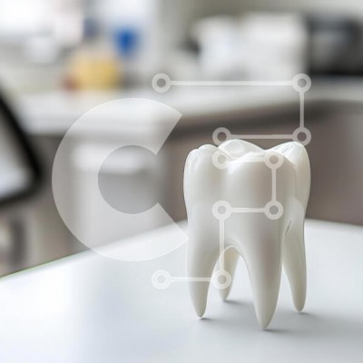 Υπάρχει δυνατότητα προσωποποίησης με δική σας φωτογραφία και προσαρμογής διαστάσεων κατόπιν παραγγελίας. Το συγεκεριμενο puzzle παρουσιαζει Η εικόνα δείχνει ένα μεγάλο, γυαλιστερό λευκό μοντέλο δοντιού τοποθετημένο σε μια καθαρή, λευκή επιφάνεια. Το φόντο είναι θολό, χαρακτηριστικό ενός περιβάλλοντος οδοντιατρείου, υποδηλώνοντας εστίαση στην οδοντιατρική φροντίδα και εκπαίδευση. Η λεία και γυαλιστερή επιφάνεια του