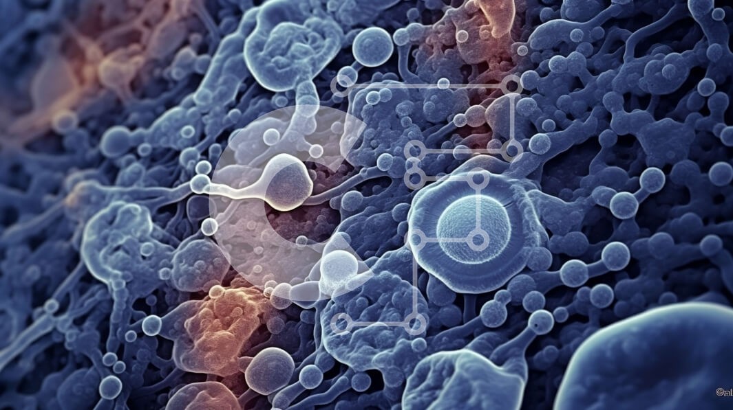 Υπάρχει δυνατότητα προσωποποίησης με δική σας φωτογραφία και προσαρμογής διαστάσεων κατόπιν παραγγελίας. Το συγεκεριμενο puzzle παρουσιαζει Αυτή είναι μια εικόνα μιας κυτταρικής δομής, πιθανότατα από ένα βιολογικό δείγμα. Η εικόνα δείχνει ένα πολύπλοκο δίκτυο κελιών, με διάφορα σχήματα και μεγέθη. Τα κελιά φαίνεται να συνδέονται μεταξύ τους, σχηματίζοντας μια δομή που μοιάζει με ιστό. Τα χρώματα που χρησιμοποιούντ
