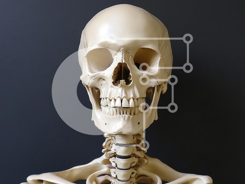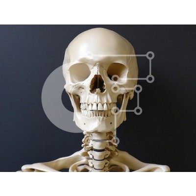 Υπάρχει δυνατότητα προσωποποίησης με δική σας φωτογραφία και προσαρμογής διαστάσεων κατόπιν παραγγελίας. Το συγεκεριμενο puzzle παρουσιαζει Η εικόνα δείχνει ένα μοντέλο ανθρώπινου σκελετού, που εμφανίζει εμφανώς το κρανίο και το πάνω μέρος του σώματος. Ο σκελετός βρίσκεται σε ένα απλό σκούρο φόντο, τονίζοντας τις ανατομικές του λεπτομέρειες. Το κρανίο είναι σαφώς καθορισμένο με ορατά δόντια και κόγχες των ματιών,