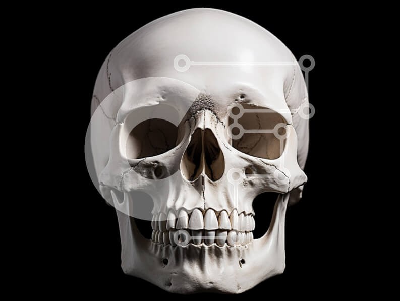 Υπάρχει δυνατότητα προσωποποίησης με δική σας φωτογραφία και προσαρμογής διαστάσεων κατόπιν παραγγελίας. Το συγεκεριμενο puzzle παρουσιαζει Η εικόνα απεικονίζει ένα ανθρώπινο κρανίο σε μαύρο φόντο, που δείχνει την περίπλοκη δομή και τις λεπτομέρειες του. Το κρανίο είναι λευκό, εμφανίζει λεία επιφάνεια με ορατά ράμματα και οδοντικά χαρακτηριστικά, συμπεριλαμβανομένων των προεξοχών δοντιών. Αυτή η σαφής παρουσίαση ε