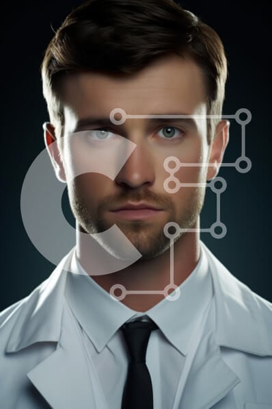 Υπάρχει δυνατότητα προσωποποίησης με δική σας φωτογραφία και προσαρμογής διαστάσεων κατόπιν παραγγελίας. Το συγεκεριμενο puzzle παρουσιαζει Αυτή η εικόνα απεικονίζει έναν άνδρα γιατρό με σοβαρή έκφραση, ντυμένο με λευκό εργαστηριακό παλτό και μαύρη γραβάτα. Το φόντο είναι σκούρο, τονίζοντας το πρόσωπό του και την επαγγελματική ενδυμασία. Η περιποιημένη του εμφάνιση και το άμεσο βλέμμα του μεταδίδουν αυτοπεποίθηση