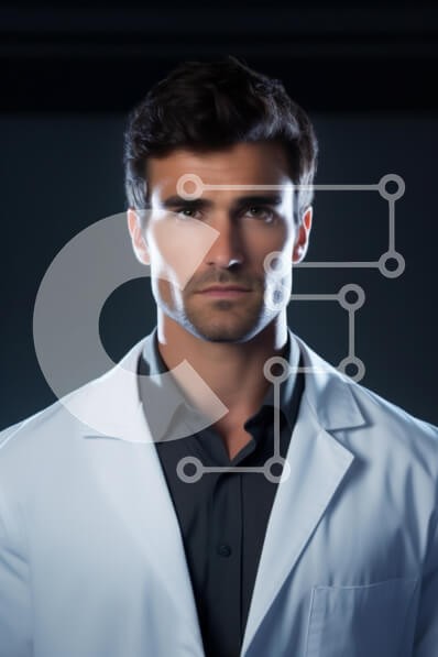 Υπάρχει δυνατότητα προσωποποίησης με δική σας φωτογραφία και προσαρμογής διαστάσεων κατόπιν παραγγελίας. Το συγεκεριμενο puzzle παρουσιαζει Αυτή η εικόνα παρουσιάζει έναν όμορφο άνδρα γιατρό ή επαγγελματία ιατρό να στέκεται μπροστά σε ένα σκούρο φόντο. Φοράει ένα λευκό παλτό εργαστηρίου πάνω από ένα σκούρο πουκάμισο και η έκφρασή του είναι σοβαρή και συγκεντρωμένη. Ο φωτισμός τονίζει τα καλά καθορισμένα χαρακτηρισ