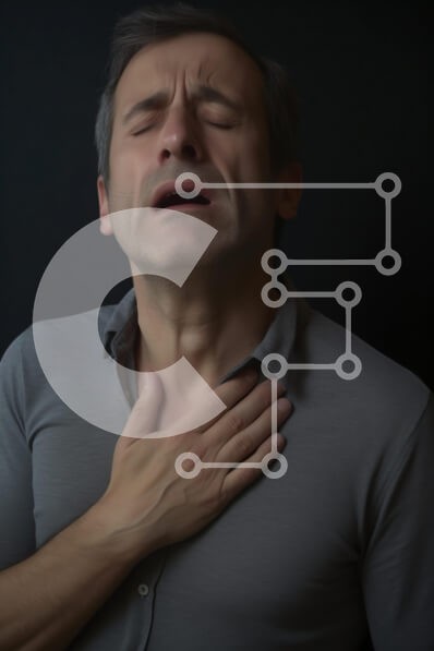 Υπάρχει δυνατότητα προσωποποίησης με δική σας φωτογραφία και προσαρμογής διαστάσεων κατόπιν παραγγελίας. Το συγεκεριμενο puzzle παρουσιαζει Η εικόνα απεικονίζει έναν άνδρα να πιάνει το λαιμό του με μια πονεμένη έκφραση στο πρόσωπό του, μεταφέροντας μια αίσθηση αγωνίας ή δυσφορίας. Φοράει ένα γκρι πουκάμισο και φαίνεται να βρίσκεται σε περιβάλλον με αμυδρό φωτισμό, κάτι που ενισχύει τη ζοφερή διάθεση. Η αντίθεση με
