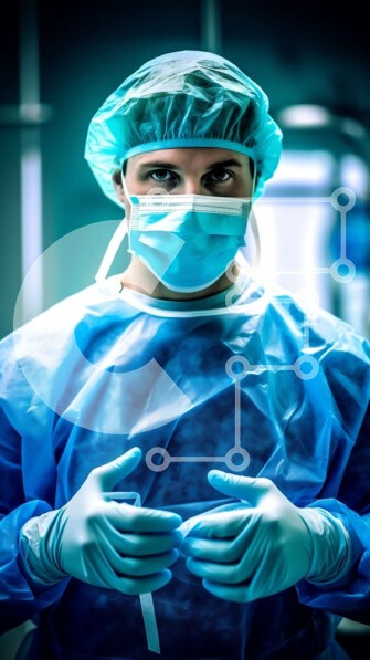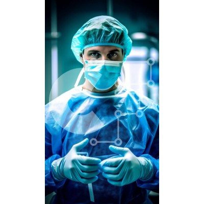 Υπάρχει δυνατότητα προσωποποίησης με δική σας φωτογραφία και προσαρμογής διαστάσεων κατόπιν παραγγελίας. Το συγεκεριμενο puzzle παρουσιαζει Αυτή η εικόνα απεικονίζει έναν χειρουργό με μπλε τρίβει και μια μάσκα προσώπου να στέκεται σε ένα χειρουργείο περιτριγυρισμένος από διάφορα ιατρικά μηχανήματα. Ο χειρουργός κρατά ένα νυστέρι στο ένα χέρι και τα δύο χέρια είναι διπλωμένα μπροστά τους. Η αμυδρά φωτισμένη ατμόσφα