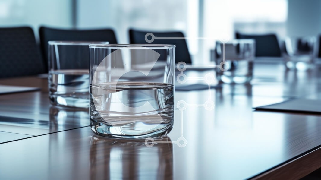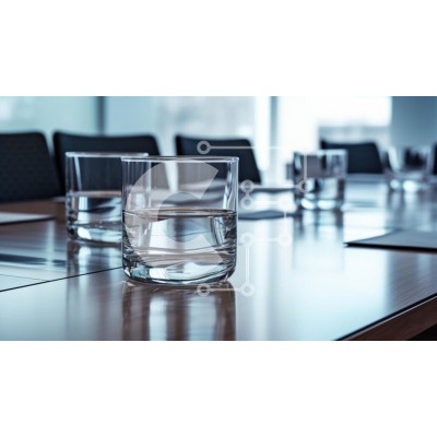 Υπάρχει δυνατότητα προσωποποίησης με δική σας φωτογραφία και προσαρμογής διαστάσεων κατόπιν παραγγελίας. Το συγεκεριμενο puzzle παρουσιαζει Η εικόνα αποτυπώνει ένα σκηνικό αίθουσας συνεδριάσεων όπου πολλά καθαρά ποτήρια γεμάτα νερό τοποθετούνται σε ένα γυαλισμένο ξύλινο τραπέζι. Το φόντο διαθέτει θολά περιγράμματα καρεκλών και παραθύρων, δημιουργώντας μια επαγγελματική ατμόσφαιρα. Η εστίαση είναι στα γυαλιά, αναδε