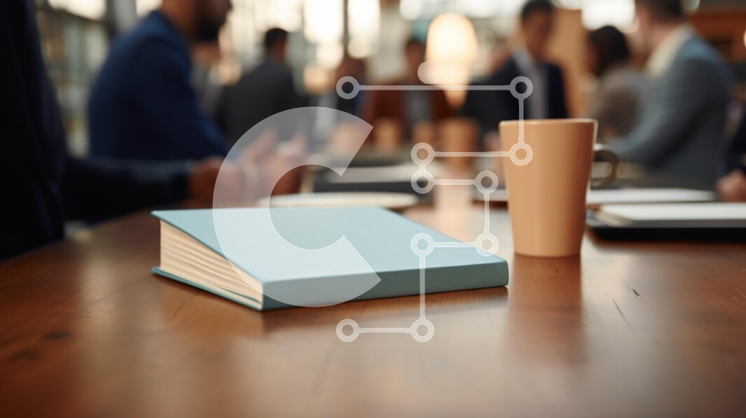 Υπάρχει δυνατότητα προσωποποίησης με δική σας φωτογραφία και προσαρμογής διαστάσεων κατόπιν παραγγελίας. Το συγεκεριμενο puzzle παρουσιαζει Αυτή η εικόνα παρουσιάζει ένα τιρκουάζ βιβλίο τοποθετημένο σε περίοπτη θέση σε ένα ξύλινο τραπέζι σε έναν σύγχρονο χώρο συναντήσεων. Στο βάθος, πολλά άτομα συμμετέχουν σε συζήτηση, προτείνοντας ένα περιβάλλον συνεργασίας. Μια κούπα καφέ σε χρώμα ροδάκινου κάθεται κοντά, προσθέ