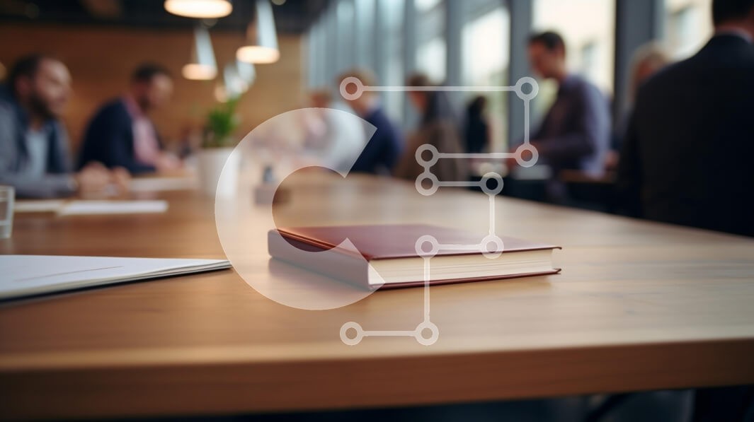 Υπάρχει δυνατότητα προσωποποίησης με δική σας φωτογραφία και προσαρμογής διαστάσεων κατόπιν παραγγελίας. Το συγεκεριμενο puzzle παρουσιαζει Αυτή η εικόνα αποτυπώνει ένα μοντέρνο σκηνικό αίθουσας συνεδριάσεων, που δείχνει ένα μακρύ ξύλινο τραπέζι με ένα βυσσινί σημειωματάριο τοποθετημένο σε περίοπτη θέση στο προσκήνιο. Το φόντο διαθέτει θολές φιγούρες ατόμων που συμμετέχουν σε συζητήσεις, με μεγάλα παράθυρα που επι
