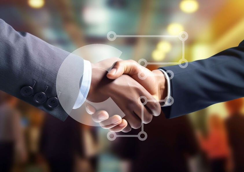 Υπάρχει δυνατότητα προσωποποίησης με δική σας φωτογραφία και προσαρμογής διαστάσεων κατόπιν παραγγελίας. Το συγεκεριμενο puzzle παρουσιαζει Η εικόνα δείχνει δύο επιχειρηματίες να δίνουν τα χέρια μπροστά σε πλήθος κόσμου. Φορούν επαγγελματικές ενδυμασίες, κάτι που υποδηλώνει ότι συμμετέχουν σε κάποιο είδος επιχειρηματικής συναλλαγής ή συνάντησης. Υπάρχουν επίσης πολλά άλλα άτομα ορατά στο παρασκήνιο, υποδηλώνοντας