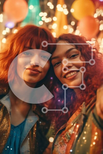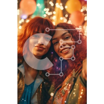 Υπάρχει δυνατότητα προσωποποίησης με δική σας φωτογραφία και προσαρμογής διαστάσεων κατόπιν παραγγελίας. Το συγεκεριμενο puzzle παρουσιαζει Αυτή η εικόνα παρουσιάζει δύο νεαρές γυναίκες με πολύχρωμα μαλλιά και ασορτί ρούχα να βγάζουν μια selfie. Στέκονται μπροστά σε ένα ζωντανό σκηνικό με μπαλόνια να κρέμονται από το ταβάνι. Οι γυναίκες χαμογελούν και ποζάρουν στον φωτογραφικό φακό, αποπνέοντας μια ζωηρή και διασκ