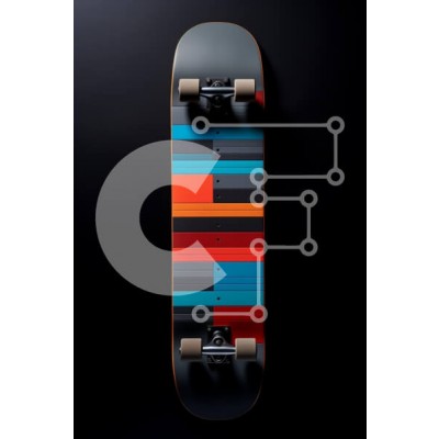 Υπάρχει δυνατότητα προσωποποίησης με δική σας φωτογραφία και προσαρμογής διαστάσεων κατόπιν παραγγελίας. Το συγεκεριμενο Puzzle 10x10 cm – 25 κομμ παρουσιαζει Αυτή η εικόνα παρουσιάζει ένα skateboard με ένα ζωντανό και πολύχρωμο σχέδιο με οριζόντιες ρίγες σε διάφορες αποχρώσεις, όπως μπλε, πορτοκαλί, κόκκινο και γκρι. Το skateboard είναι τοποθετημένο σε μαύρο φόντο, αναδεικνύοντας τη μοναδική του