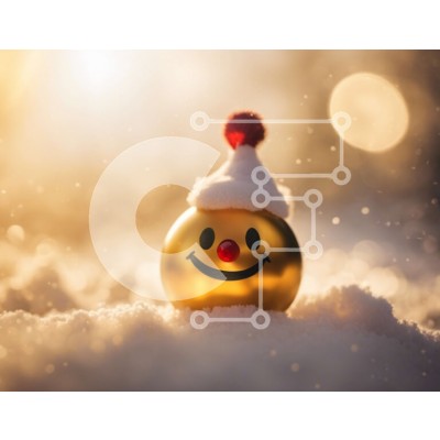 Υπάρχει δυνατότητα προσωποποίησης με δική σας φωτογραφία και προσαρμογής διαστάσεων κατόπιν παραγγελίας. Το συγεκεριμενο puzzle παρουσιαζει Αυτή η εικόνα παρουσιάζει μια χρυσή χαμογελαστή μπάλα που κάθεται στο χιόνι, με το καπέλο της τοποθετημένο από πάνω της. Η μπάλα μπορεί να δει από διαφορετικές γωνίες και είναι πιθανό να βρίσκεται σε διάφορα σημεία γύρω από το σπίτι, όπως το σαλόνι, το υπνοδωμάτιο ή η τραπεζαρ