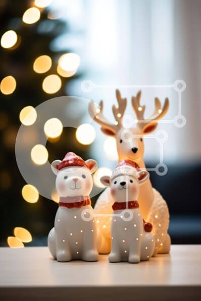 Υπάρχει δυνατότητα προσωποποίησης με δική σας φωτογραφία και προσαρμογής διαστάσεων κατόπιν παραγγελίας. Το συγεκεριμενο Puzzle 10x10 cm – 25 κομμ παρουσιαζει Αυτή η εικόνα παρουσιάζει τρία ειδώλια ταράνδων ντυμένων με κόκκινα και λευκά ρούχα, τοποθετημένα σε ένα τραπέζι μπροστά από ένα χριστουγεννιάτικο δέντρο. Μια διακοσμητική σφαίρα χιονιού διακρίνεται στο βάθος, προσθέτοντας στη γιορτινή ατμόσ