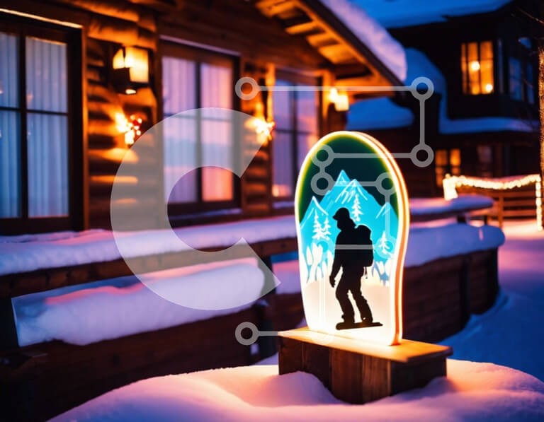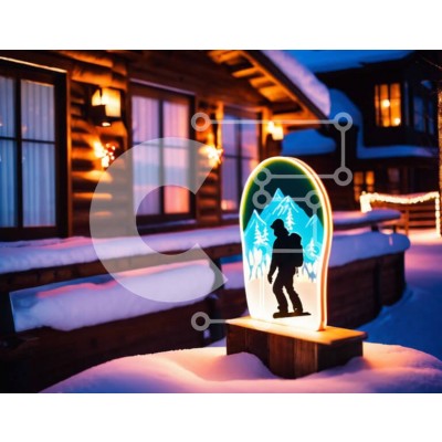 Υπάρχει δυνατότητα προσωποποίησης με δική σας φωτογραφία και προσαρμογής διαστάσεων κατόπιν παραγγελίας. Το συγεκεριμενο puzzle παρουσιαζει Αυτή η εικόνα απεικονίζει μια χιονισμένη καμπίνα με ένα φωτισμένο snowboard μπροστά της. Η καμπίνα φωτίζεται από μέσα, με ένα άτομο στο σνόουμπορντ ορατό από το παράθυρο. Υπάρχουν επίσης πολλά φώτα που περιβάλλουν το snowboard, παρέχοντας επιπλέον φωτισμό και δημιουργώντας μια