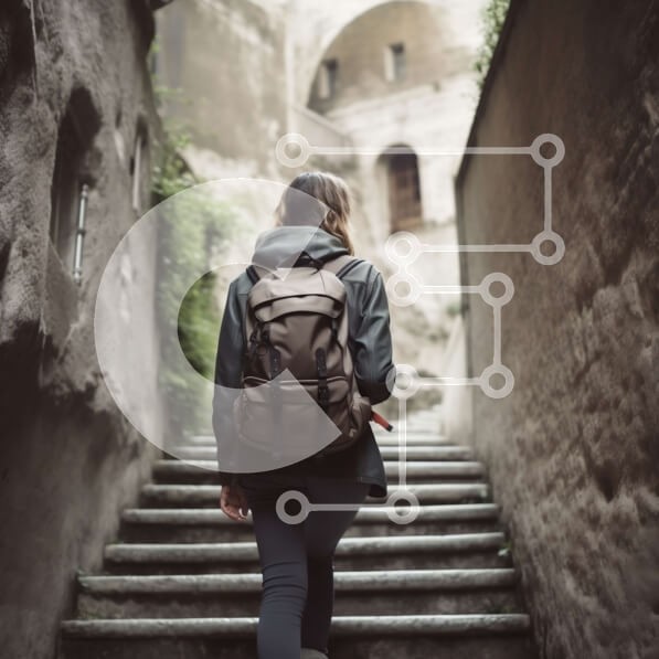 | Όνομα Προϊόντος | Intra Συλλεκτικό Ξύλινο Παζλ Plywood 4mm - Γυναίκα που περπατά κάτω από τις σκάλες στο Stone Alleyway με το σακίδιο Σε Ξύλινο Κουτί - Διαστάσεις Puzzle: 10x10 cm – 25 κομμάτια |