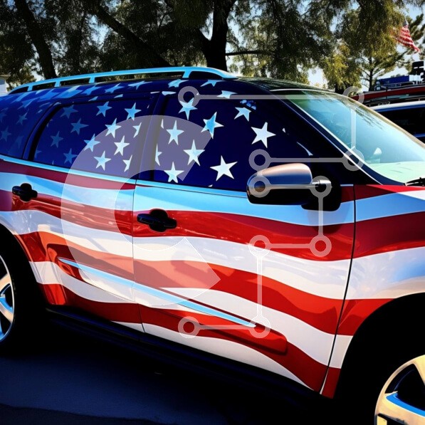 | Όνομα Προϊόντος | Intra Συλλεκτικό Ξύλινο Παζλ Plywood 4mm - Κόκκινο, λευκό και μπλε SUV με αμερικανική σημαία Σε Ξύλινο Κουτί - Διαστάσεις Puzzle: 10x10 cm – 25 κομμάτια |