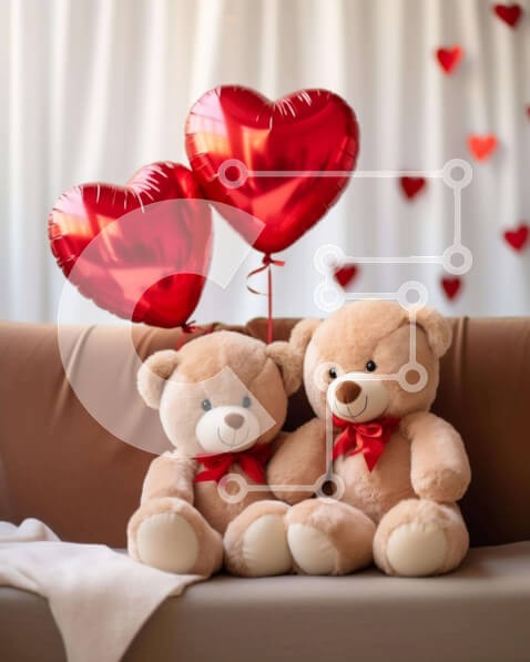 Υπάρχει δυνατότητα προσωποποίησης με δική σας φωτογραφία και προσαρμογής διαστάσεων κατόπιν παραγγελίας. Το συγεκεριμενο puzzle παρουσιαζει Αυτή η εικόνα παρουσιάζει δύο αρκουδάκια που κάθονται σε έναν καναπέ διακοσμημένο με κόκκινα μπαλόνια και διακοσμητικά σε σχήμα καρδιάς. Αποτυπώνει την ουσία μιας γιορτής του Αγίου Βαλεντίνου, με αγάπη και χαρά στον αέρα. Το δωμάτιο είναι διακοσμημένο με διάσπαρτα μαξιλάρια, π