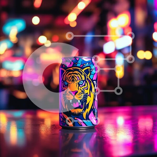 Υπάρχει δυνατότητα προσωποποίησης με δική σας φωτογραφία και προσαρμογής διαστάσεων κατόπιν παραγγελίας. Το συγεκεριμενο Puzzle 10x10 cm – 25 κομμ παρουσιαζει Η εικόνα παρουσιάζει ένα ζωντανό κουτί αναψυκτικού με ένα πολύχρωμο, καλλιτεχνικό σχέδιο τίγρης πάνω του. Το φόντο είναι θολό με έντονα, πολύχρωμα φώτα που δημιουργούν μια ζωντανή ατμόσφαιρα, υποδηλώνοντας ένα σκηνικό μπαρ ή νυχτερινής διασκ