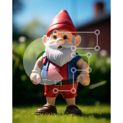Υπάρχει δυνατότητα προσωποποίησης με δική σας φωτογραφία και προσαρμογής διαστάσεων κατόπιν παραγγελίας. Το συγεκεριμενο puzzle παρουσιαζει Η εικόνα απεικονίζει ένα παιχνίδι καλικάντζαρο να στέκεται στο γρασίδι με τα χέρια του στους γοφούς του. Είναι ντυμένος με κόκκινα και μπλε ρούχα, με λευκή γενειάδα και κοντά καστανά μαλλιά. Πολλά άλλα μικρά παιχνίδια, όπως αρκουδάκια, λουλούδια και φυτά, τον περιβάλλουν. Ένα