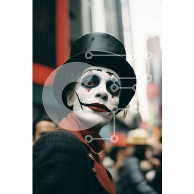 Υπάρχει δυνατότητα προσωποποίησης με δική σας φωτογραφία και προσαρμογής διαστάσεων κατόπιν παραγγελίας. Το συγεκεριμενο puzzle παρουσιαζει Η εικόνα δείχνει έναν άνδρα ντυμένο ως Τζόκερ με καπέλο και μακιγιάζ κλόουν, να στέκεται σε έναν αστικό δρόμο που περιβάλλεται από θεατές. Η σκηνή αποτυπώνει μια στιγμή ιδιοτροπίας και θεατρικότητας σε ένα πολυσύχναστο περιβάλλον πόλης. Ένα μοναδικό puzzle που συνδυάζει ποιότ