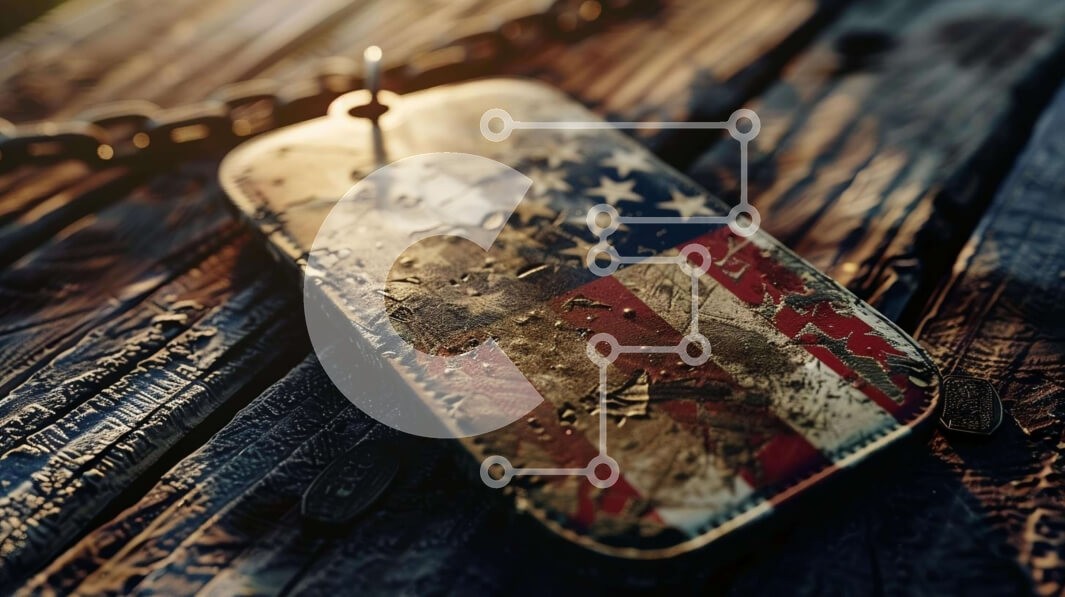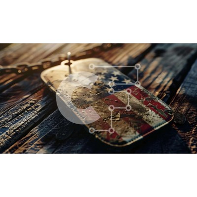 Υπάρχει δυνατότητα προσωποποίησης με δική σας φωτογραφία και προσαρμογής διαστάσεων κατόπιν παραγγελίας. Το συγεκεριμενο Puzzle 10x10 cm – 25 κομμ παρουσιαζει Η εικόνα παρουσιάζει μια ετικέτα σκύλου με τυπωμένη την αμερικανική σημαία, τοποθετημένη σε ένα παλιό ξύλινο τραπέζι. Η ρύθμιση υποδηλώνει ότι θα μπορούσε να χρησιμοποιηθεί για αποθήκευση ή προβολή, που πιθανώς σχετίζεται με στρατιωτικό εξοπ
