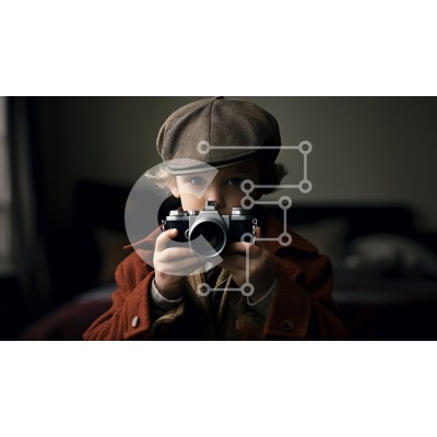 Υπάρχει δυνατότητα προσωποποίησης με δική σας φωτογραφία και προσαρμογής διαστάσεων κατόπιν παραγγελίας. Το συγεκεριμενο puzzle παρουσιαζει Αυτή η εικόνα δείχνει ένα νεαρό αγόρι με καφέ δερμάτινο μπουφάν και καπέλο Fedora να κρατά μια vintage κάμερα μέχρι το μάτι του. Η κάμερα έχει καφέ δερμάτινο λουράκι και ασημί φακό. Το αγόρι στέκεται μπροστά σε έναν λευκό τοίχο, με ένα παράθυρο πίσω του με λευκές κουρτίνες. Το