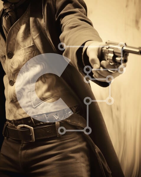 Υπάρχει δυνατότητα προσωποποίησης με δική σας φωτογραφία και προσαρμογής διαστάσεων κατόπιν παραγγελίας. Το συγεκεριμενο puzzle παρουσιαζει Η εικόνα απεικονίζει έναν άνδρα ντυμένο με παλιομοδίτικη στολή, με το όπλο του στο χέρι. Κρατάει το όπλο σαν να είναι έτοιμος να το πυροβολήσει, κάτι που φαίνεται στο ασπρόμαυρο φόντο της εικόνας. Ο άνδρας φαίνεται να ασχολείται με κάποιο είδος δραστηριότητας, όπως σκοποβολή ή