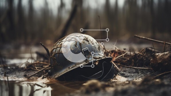 Υπάρχει δυνατότητα προσωποποίησης με δική σας φωτογραφία και προσαρμογής διαστάσεων κατόπιν παραγγελίας. Το συγεκεριμενο puzzle παρουσιαζει Αυτή η εικόνα δείχνει ένα παλιό στρατιωτικό κράνος βυθισμένο σε λασπωμένο νερό σε μια δασώδη περιοχή. Το κράνος είναι πολύ καλυμμένο με βρωμιά και συντρίμμια, υποδεικνύοντας πιθανή απώλεια ή εγκατάλειψη. Το γαλήνιο αλλά στοιχειωμένο σκηνικό παρουσιάζει μια συναρπαστική οπτική