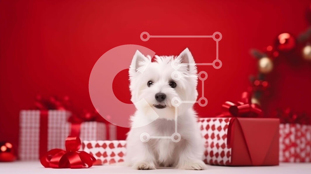 Υπάρχει δυνατότητα προσωποποίησης με δική σας φωτογραφία και προσαρμογής διαστάσεων κατόπιν παραγγελίας. Το συγεκεριμενο Puzzle 10x10 cm – 25 κομμ παρουσιαζει Αυτή η εικόνα παρουσιάζει ένα αξιολάτρευτο λευκό West Highland Terrier που κάθεται μπροστά από κόκκινα δώρα και διακοσμήσεις. Ο σκύλος κοιτάζει κατευθείαν την κάμερα, με μια ανυπόμονη έκφραση, σαν να περιμένει τον ιδιοκτήτη του να γυρίσει σπ