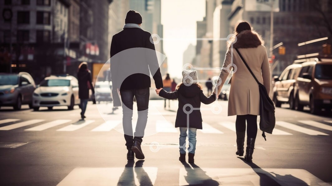 Υπάρχει δυνατότητα προσωποποίησης με δική σας φωτογραφία και προσαρμογής διαστάσεων κατόπιν παραγγελίας. Το συγεκεριμενο puzzle παρουσιαζει Αυτή η εικόνα απεικονίζει μια τριμελή οικογένεια που περπατά σε έναν πολυσύχναστο δρόμο της πόλης. Ο πατέρας κρατά το χέρι της μικρής κόρης του και η μητέρα περπατά μπροστά τους. Φορούν όλοι χειμωνιάτικα ρούχα και ο πατέρας κουβαλάει μια τσάντα στον ώμο του. Το φόντο είναι γεμ