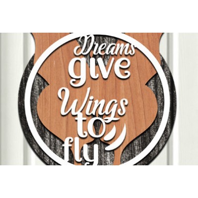 Κριτικάρετε το(τα): Intra απο ξύλο plywood Χρώμα wenge 3mm-4mm πάχος - Τα όνειρα δίνουν φτερά για να πετάξουν στρογγυλό σημάδι Δίασταση 30x20 cm INTRAFABR-110186361