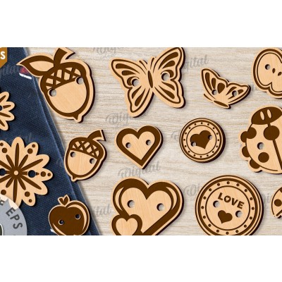 Διακοσμητικά κουμπιά από ξύλο κομμένα με λέιζερ Πρόκειται για ψηφιακό σχεδίου, ιδανικό για κοπή με ή plotter. Κατασκευασμένο απο Ξύλο από plywood [3mm ή 4mm], κομμένο με ακρίβεια στην βιοτεχνία Intrahome . Το φυσικό ξύλο προσφέρει μια κομψή, αυθεντική υφή και μπορεί εύκολα να βαφτεί ή να διακοσμηθεί σύμφωνα με το προσωπικό σας γούστο. Ελληνική παραγωγή – Κατασκευάζεται στην Ελλάδα με προσοχή στη λεπτομέρεια και υψηλές προδιαγραφές ποιότητας. ✔️ Υλικό: Plywood υψηλής ποιότητας ✔️ Διατίθεται σε πάχος 3mm ή 4mm ✔️ Ελαφρύ, ανθεκτικό και εύκολο στη χρήση ✔️ Ιδανικό για βάψιμο, χάραξη, κόλληση και χειροτεχνίες ✔️ Κατάλληλο για μπομπονιέρες, διακόσμηση, δώρα και DIY projects ✅ Εγγύηση 2 ετών – Σε περίπτωση σπασίματος, η αντικατάσταση γίνεται άμεσα, χάρη στην τοπική ελληνική παραγωγή μας. Ιδανικό για δημιουργικούς ανθρώπους που αγαπούν το DIY. Μπορεί να γίνει ξεχωριστό δώρο με προσωπικό χαρακτήρα. Φέρνει “χειροποίητη” αισθητική στη διακόσμηση. -files- Ελληνική χειροποίητη παραγωγ