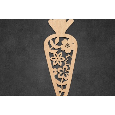 Πασχαλινό λουλουδάτο καρότο με λέιζερ Πρόκειται για ψηφιακό σχεδίου, ιδανικό για κοπή με ή plotter. Κατασκευασμένο απο Ξύλο από plywood [3mm ή 4mm], κομμένο με ακρίβεια στην βιοτεχνία Intrahome . Το φυσικό ξύλο προσφέρει μια κομψή, αυθεντική υφή και μπορεί εύκολα να βαφτεί ή να διακοσμηθεί σύμφωνα με το προσωπικό σας γούστο. Ελληνική παραγωγή – Κατασκευάζεται στην Ελλάδα με προσοχή στη λεπτομέρεια και υψηλές προδιαγραφές ποιότητας. ✔️ Υλικό: Plywood υψηλής ποιότητας ✔️ Διατίθεται σε πάχος 3mm ή 4mm ✔️ Ελαφρύ, ανθεκτικό και εύκολο στη χρήση ✔️ Ιδανικό για βάψιμο, χάραξη, κόλληση και χειροτεχνίες ✔️ Κατάλληλο για μπομπονιέρες, διακόσμηση, δώρα και DIY projects ✅ Εγγύηση 2 ετών – Σε περίπτωση σπασίματος, η αντικατάσταση γίνεται άμεσα, χάρη στην τοπική ελληνική παραγωγή μας. Ιδανικό για δημιουργικούς ανθρώπους που αγαπούν το DIY. Μπορεί να γίνει ξεχωριστό δώρο με προσωπικό χαρακτήρα. Φέρνει “χειροποίητη” αισθητική στη διακόσμηση. -files- Ελληνική χειροποίητη παραγωγή → στηρίζ