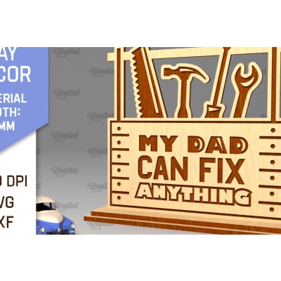 Διακόσμηση για την Ημέρα του Πατέρα Πρόκειται για ψηφιακό σχεδίου, ιδανικό για κοπή με ή plotter. Κατασκευασμένο απο Ξύλο από plywood [3mm ή 4mm], κομμένο με ακρίβεια στην βιοτεχνία Intrahome . Το φυσικό ξύλο προσφέρει μια κομψή, αυθεντική υφή και μπορεί εύκολα να βαφτεί ή να διακοσμηθεί σύμφωνα με το προσωπικό σας γούστο. Ελληνική παραγωγή – Κατασκευάζεται στην Ελλάδα με προσοχή στη λεπτομέρεια και υψηλές προδιαγραφές ποιότητας. ✔️ Υλικό: Plywood υψηλής ποιότητας ✔️ Διατίθεται σε πάχος 3mm ή 4mm ✔️ Ελαφρύ, ανθεκτικό και εύκολο στη χρήση ✔️ Ιδανικό για βάψιμο, χάραξη, κόλληση και χειροτεχνίες ✔️ Κατάλληλο για μπομπονιέρες, διακόσμηση, δώρα και DIY projects ✅ Εγγύηση 2 ετών – Σε περίπτωση σπασίματος, η αντικατάσταση γίνεται άμεσα, χάρη στην τοπική ελληνική παραγωγή μας. Ιδανικό για δημιουργικούς ανθρώπους που αγαπούν το DIY. Μπορεί να γίνει ξεχωριστό δώρο με προσωπικό χαρακτήρα. Φέρνει “χειροποίητη” αισθητική στη διακόσμηση. -files- Ελληνική χειροποίητη παραγωγή → στηρίζ