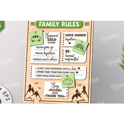 Οικογενειακοί κανόνες Κοπή με λέιζερ πλάκας Πρόκειται για ψηφιακό σχεδίου, ιδανικό για κοπή με ή plotter. Κατασκευασμένο απο Ξύλο από plywood [3mm ή 4mm], κομμένο με ακρίβεια στην βιοτεχνία Intrahome . Το φυσικό ξύλο προσφέρει μια κομψή, αυθεντική υφή και μπορεί εύκολα να βαφτεί ή να διακοσμηθεί σύμφωνα με το προσωπικό σας γούστο. Ελληνική παραγωγή – Κατασκευάζεται στην Ελλάδα με προσοχή στη λεπτομέρεια και υψηλές προδιαγραφές ποιότητας. ✔️ Υλικό: Plywood υψηλής ποιότητας ✔️ Διατίθεται σε πάχος 3mm ή 4mm ✔️ Ελαφρύ, ανθεκτικό και εύκολο στη χρήση ✔️ Ιδανικό για βάψιμο, χάραξη, κόλληση και χειροτεχνίες ✔️ Κατάλληλο για μπομπονιέρες, διακόσμηση, δώρα και DIY projects ✅ Εγγύηση 2 ετών – Σε περίπτωση σπασίματος, η αντικατάσταση γίνεται άμεσα, χάρη στην τοπική ελληνική παραγωγή μας. Ιδανικό για δημιουργικούς ανθρώπους που αγαπούν το DIY. Μπορεί να γίνει ξεχωριστό δώρο με προσωπικό χαρακτήρα. Φέρνει “χειροποίητη” αισθητική στη διακόσμηση. -files- Ελληνική χειροποίητη παραγωγή →