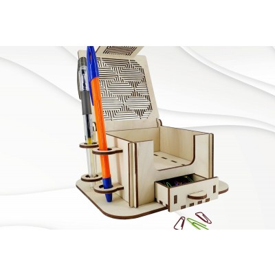 Οργανωτής γραφείου Πρόκειται για ψηφιακό σχεδίου, ιδανικό για κοπή με ή plotter. Κατασκευασμένο απο Ξύλο από plywood [3mm ή 4mm], κομμένο με ακρίβεια στην βιοτεχνία Intrahome . Το φυσικό ξύλο προσφέρει μια κομψή, αυθεντική υφή και μπορεί εύκολα να βαφτεί ή να διακοσμηθεί σύμφωνα με το προσωπικό σας γούστο. Ελληνική παραγωγή – Κατασκευάζεται στην Ελλάδα με προσοχή στη λεπτομέρεια και υψηλές προδιαγραφές ποιότητας. ✔️ Υλικό: Plywood υψηλής ποιότητας ✔️ Διατίθεται σε πάχος 3mm ή 4mm ✔️ Ελαφρύ, ανθεκτικό και εύκολο στη χρήση ✔️ Ιδανικό για βάψιμο, χάραξη, κόλληση και χειροτεχνίες ✔️ Κατάλληλο για μπομπονιέρες, διακόσμηση, δώρα και DIY projects ✅ Εγγύηση 2 ετών – Σε περίπτωση σπασίματος, η αντικατάσταση γίνεται άμεσα, χάρη στην τοπική ελληνική παραγωγή μας. Ιδανικό για δημιουργικούς ανθρώπους που αγαπούν το DIY. Μπορεί να γίνει ξεχωριστό δώρο με προσωπικό χαρακτήρα. Φέρνει “χειροποίητη” αισθητική στη διακόσμηση. -files- Ελληνική χειροποίητη παραγωγή → στηρίζετε τοπικούς δημιου