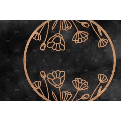 Intra απο ξύλο plywood Χρώμα wenge 3mm-4mm πάχος - Floral στρογγυλή πινακίδα Δίασταση 30x20 cm INTRAFABR-110670966