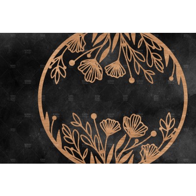 Intra απο ξύλο plywood Χρώμα wenge 3mm-4mm πάχος - Floral στρογγυλή πινακίδα Δίασταση 30x20 cm INTRAFABR-82672684